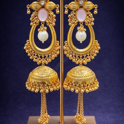 Golden Kundan Hoop Jhumka Earrings